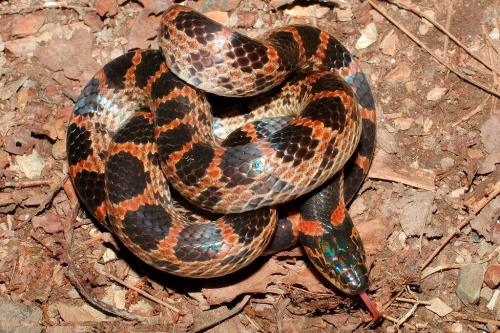 Очень красивая змея – восточный динодон. Образ жизни ведёт настолько скрытный, что даже численность точно установить невозможно. Известно только, что она крайне мала. Любой неблагоприятный фактор – пожар в лесу, например, поздние долгие заморозки по весне – может привести к полному исчезновению этого вида. Сейчас восточный динодон был отмечен в Курильском заповеднике – только на острове Шикотан.