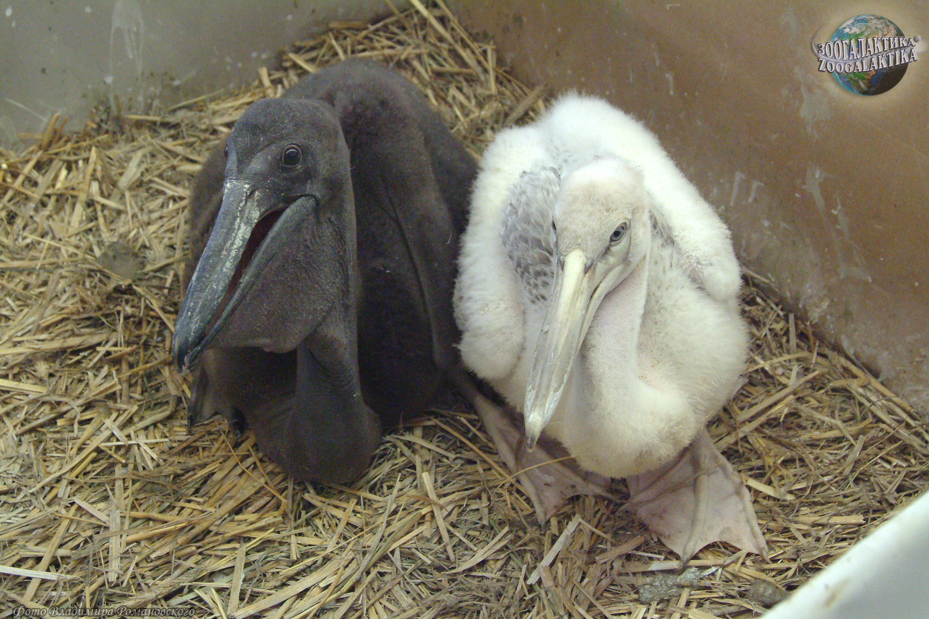 Птенец розового (слева) и кудрявого пеликанов 5223