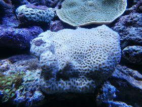 Мадрепоровые кораллы — самая обширная группа кишечнополостных. Она насчитывает свыше 2500 видов, обитающих исключительно в море. Часть из них строят коралловые рифы живет и обитают в теплых водах на малых глубинах. Среди них имеются как одиночные, так и колониальные формы, но последних подавляющее большинство. Самая характерная черта кораллов этого отряда — наличие мощного известкового скелета, образуемого эктодермой. Скелет мадрепоровых кораллов сплошной, т. е. он не состоит из отдельных элементов — спикул или игл. Подошва полипа образует скелетную пластинку, от которой поднимаются вверх (внутри септ) радиальные скелетные перегородки. Толща скелета постоянно наращивается, и у сформированного полипа живые мягкие ткани (по сравнению с толстым скелетом) выглядят как полупрозрачная пленочка. У колониальных форм скелетные чашечки отдельных полипов сливаются в единый скелет колонии. Полипы одиночных видов мадрепоровых кораллов могут достигать довольно большой величины. Так, диаметр подошвы некоторых видов грибовидных кораллов Fungia у наиболее крупных особей бывает до 25 см. Напротив, полипы колониальных форм обычно очень маленькие, как правило, всего 1—5 мм в диаметре. Форма колоний, образуемых мадрепоровыми кораллами, может быть очень разнообразной: одни виды образуют кустики, другие — плоские решетчатые плиты, третьи — похожи на цветную капусту, имеются и шаровидные колонии. Во многом форма колонии этих кораллов зависит главным образом от силы прибоя, течений, заиленности и температуры воды.