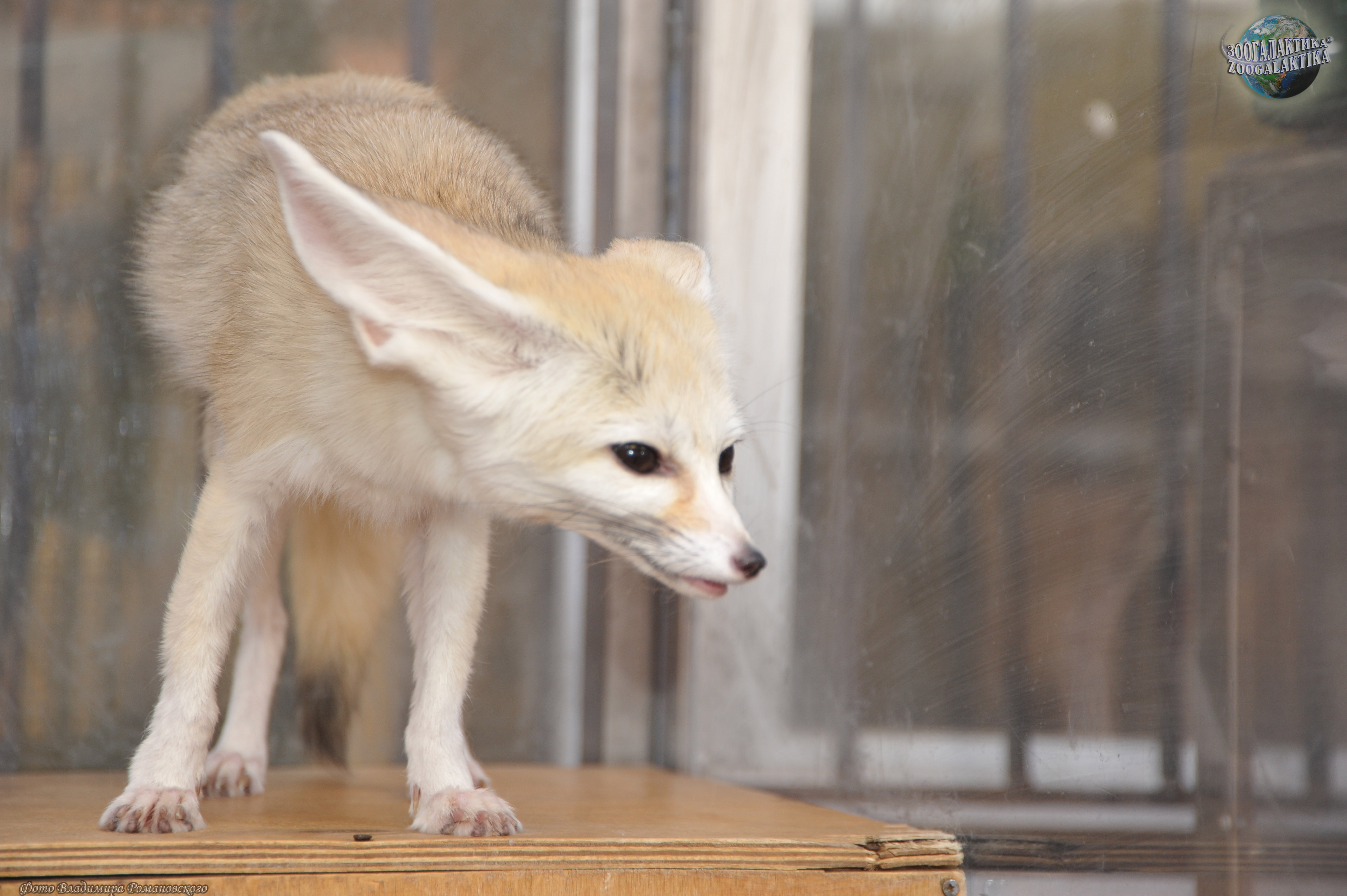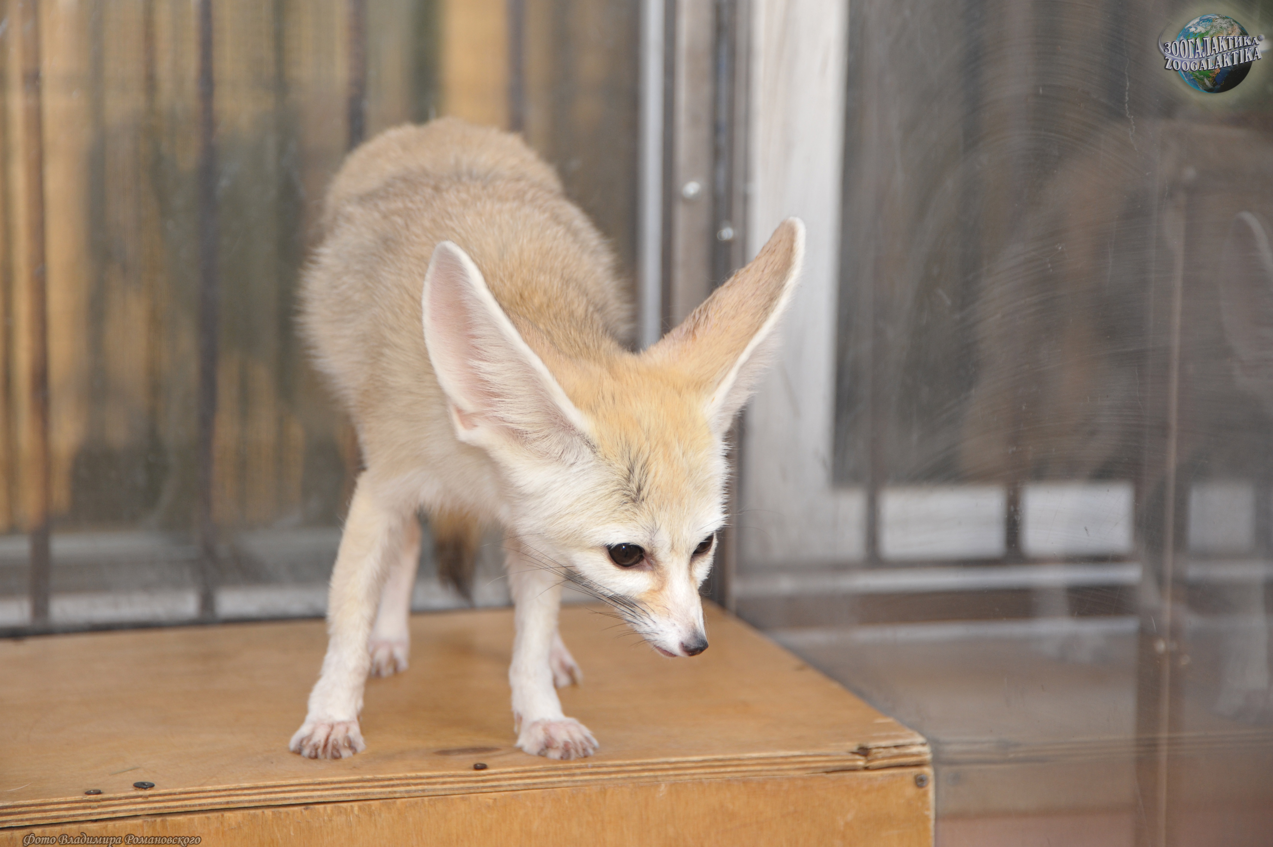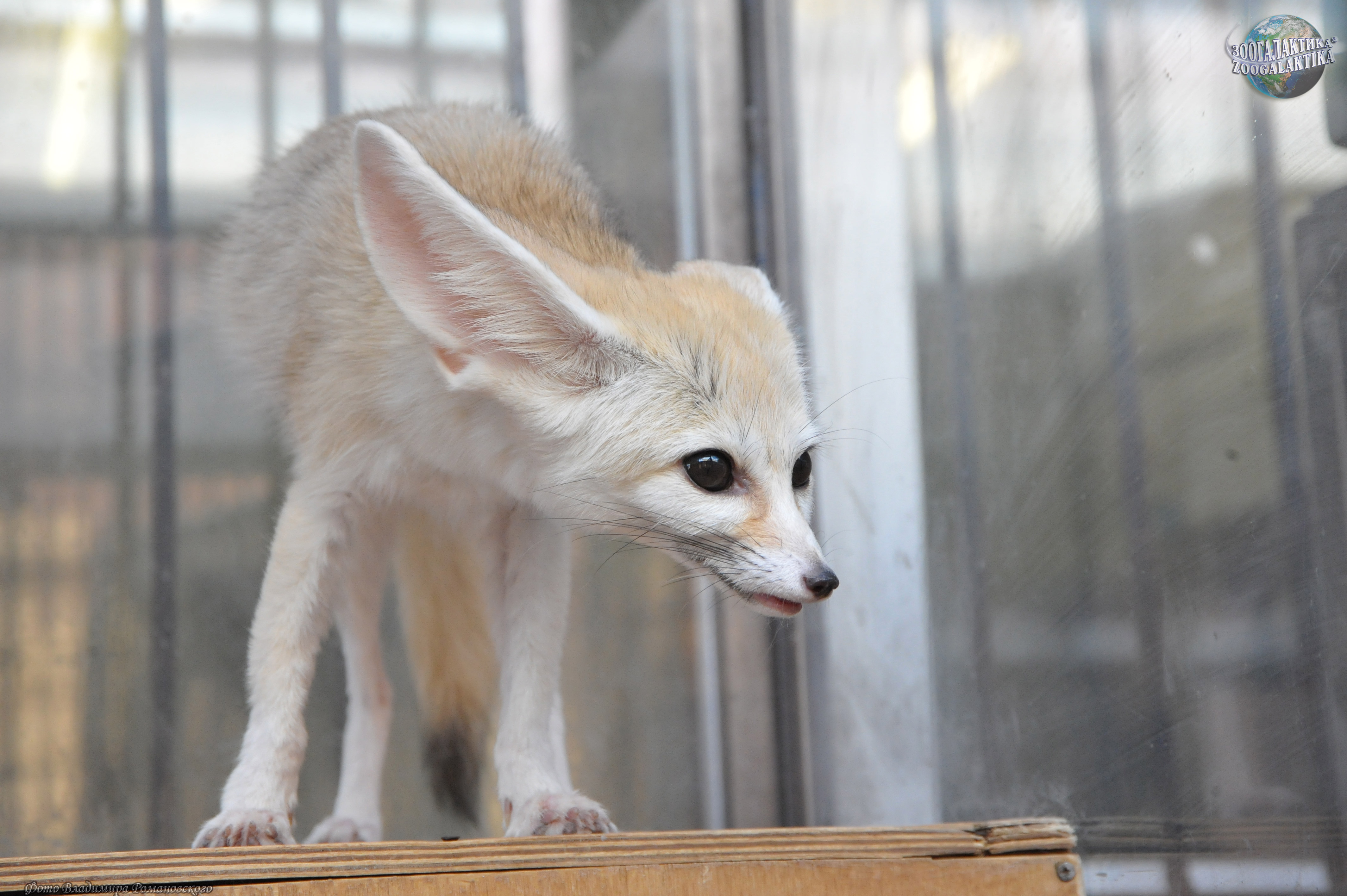 Фенек (Vulpes zerda) - самый маленький представитель семейства Псовых, по размерам он меньше домашней кошки: его высота в холке 18-22 см, длина тела 30-40 см, хвоста - до 30 см, вес до 1,5 кг. Своё имя этот зверёк получил от арабского слова fanak, что означает «лиса». Мордочка у фенека короткая и заострённая с большими глазами. Уши фенека - самые большие среди хищников по отношению к величине головы; они достигают 15 см в длину и нужны для лучшего охлаждения тела в дневную жару. Стопа у этой лисички опушена, что позволяет ей передвигаться по горячему песку. Зубы у фенека маленькие (особенно клыки) шерсть у него густая и мягкая, защитного окраса: сверху рыжеватая или палевая, снизу белая; хвост пушистый, с чёрным кончиком. Так называемая «фиалковая», или надхвостовая, железа, характерная для всех лисиц, скрыта у фенека под тёмными жёсткими волосами.