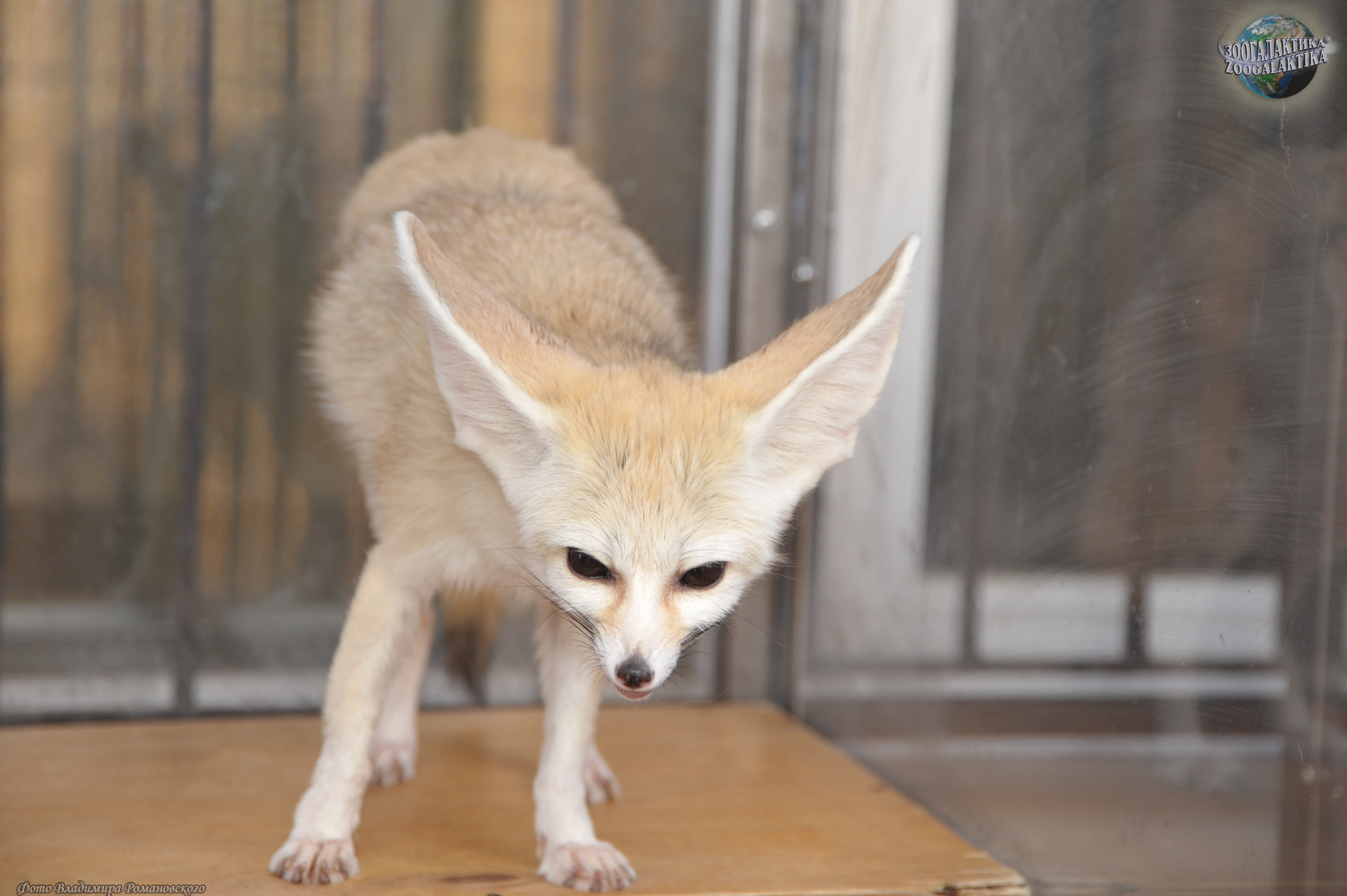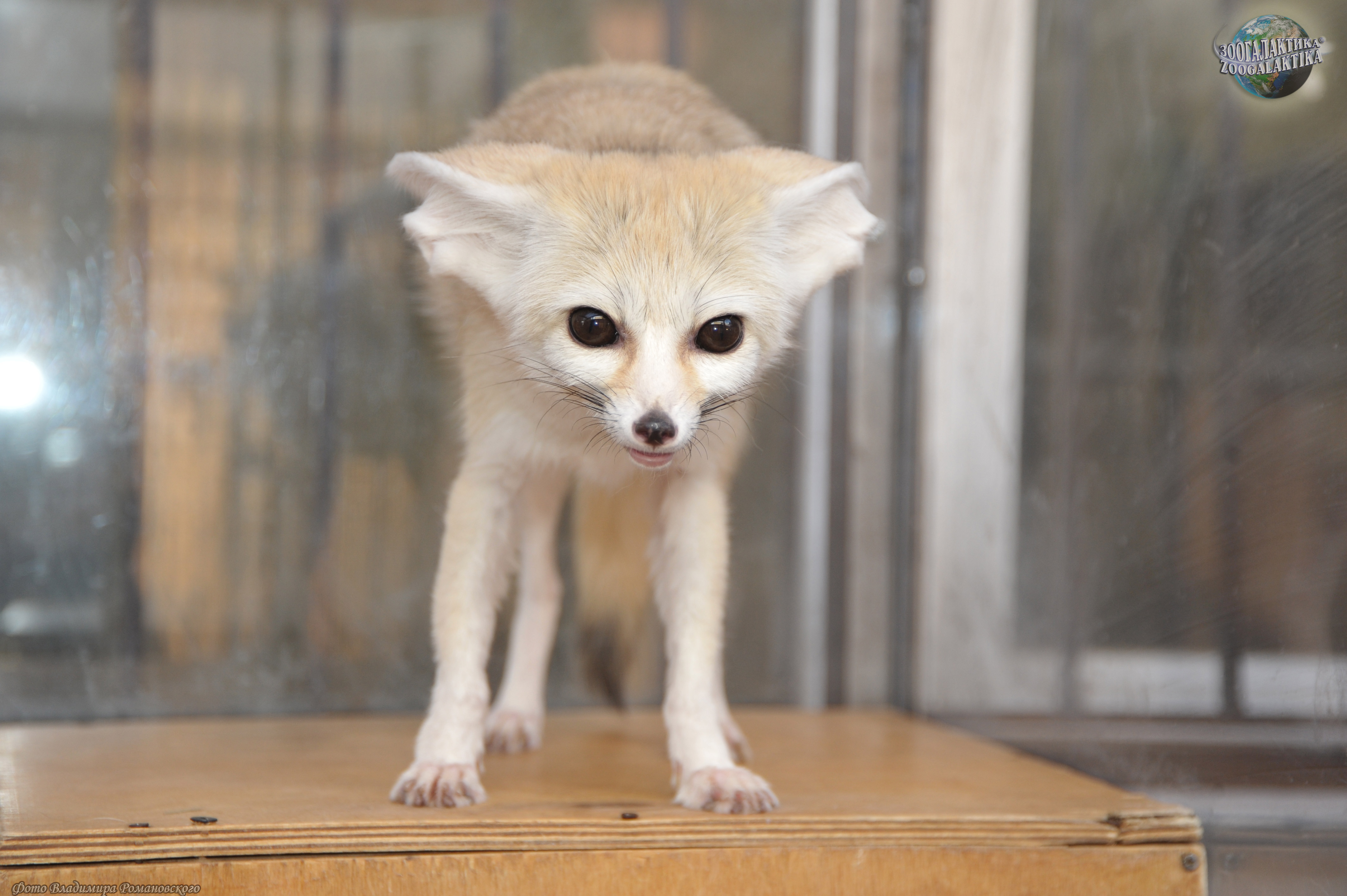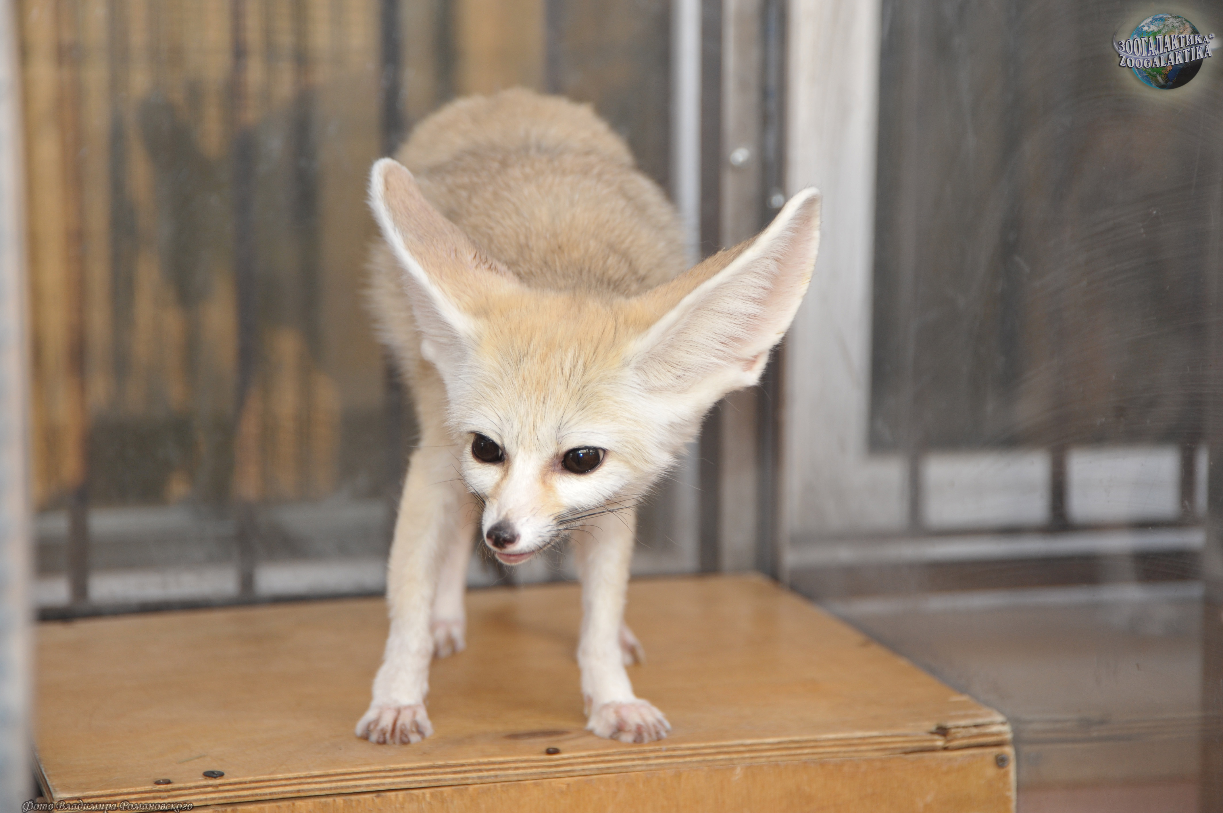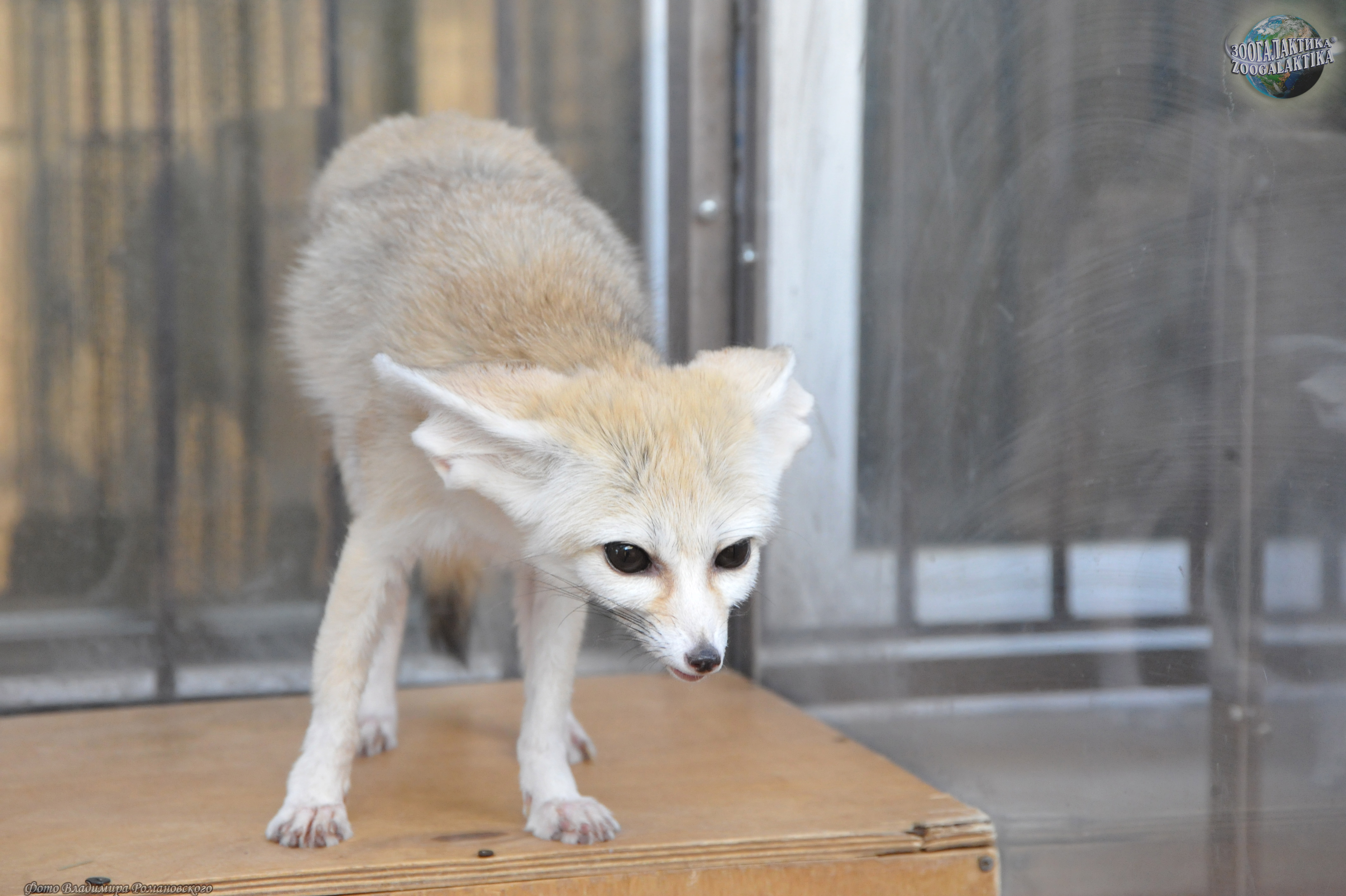 Фенек (Vulpes zerda) - самый маленький представитель семейства Псовых, по размерам он меньше домашней кошки: его высота в холке 18-22 см, длина тела 30-40 см, хвоста - до 30 см, вес до 1,5 кг. Своё имя этот зверёк получил от арабского слова fanak, что означает «лиса». Мордочка у фенека короткая и заострённая с большими глазами. Уши фенека - самые большие среди хищников по отношению к величине головы; они достигают 15 см в длину и нужны для лучшего охлаждения тела в дневную жару. Стопа у этой лисички опушена, что позволяет ей передвигаться по горячему песку. Зубы у фенека маленькие (особенно клыки) шерсть у него густая и мягкая, защитного окраса: сверху рыжеватая или палевая, снизу белая; хвост пушистый, с чёрным кончиком. Так называемая «фиалковая», или надхвостовая, железа, характерная для всех лисиц, скрыта у фенека под тёмными жёсткими волосами.